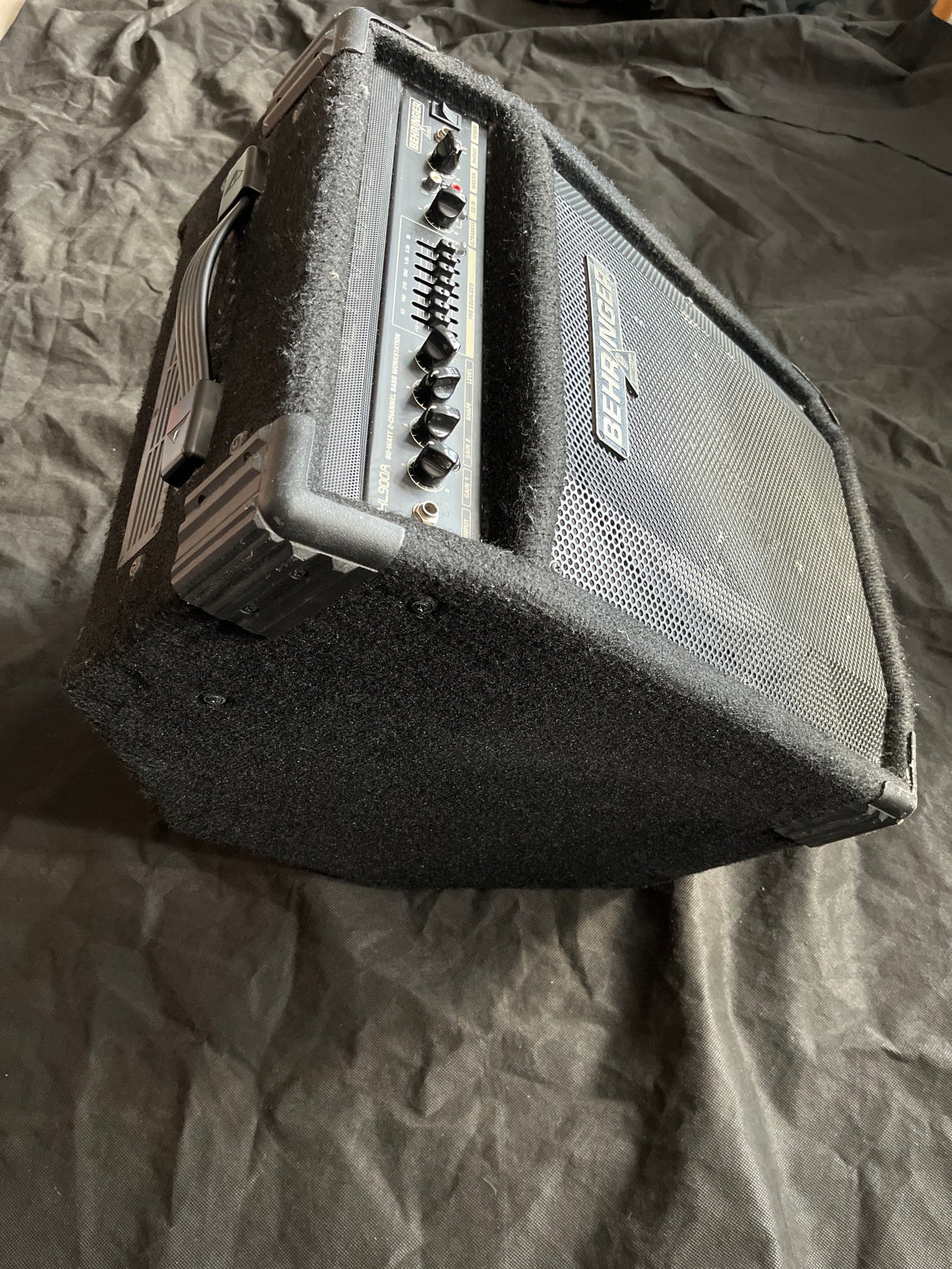 Powerful 90-Watt 2-channel bass amplifier with wedge-shaped cabinet