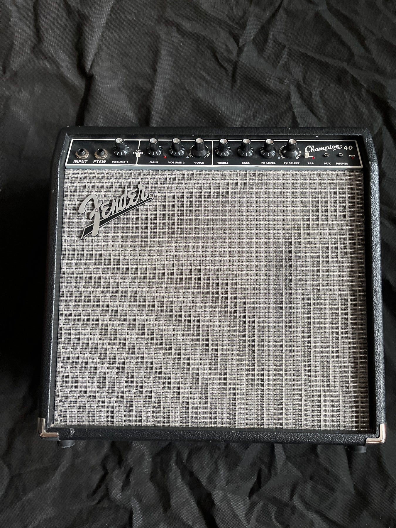 The Fender Champion 40 is a simple to use 40W two channel Combo amp with classic Fender Blackface styling and built-in effects.