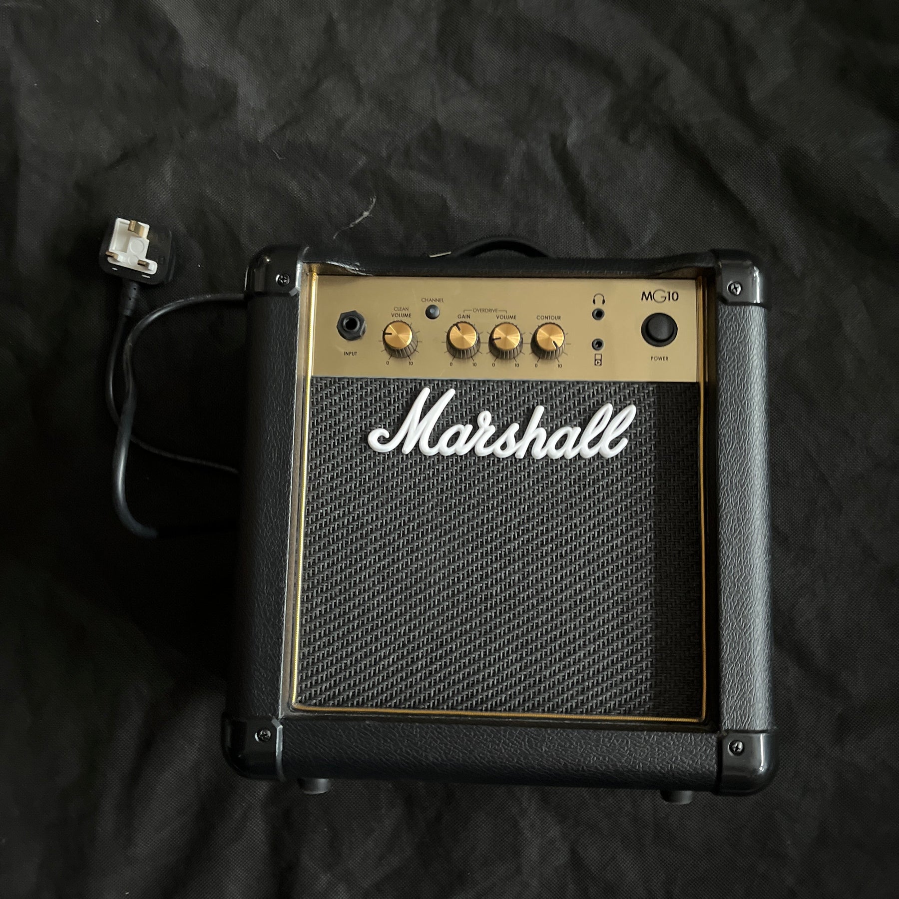 The Marshall MG10G Gold 10W Guitar Combo features the iconic 'gold' front panel design and delivers 10 watts of portable Marshall tone. It is the ideal grab-and-go practice amplifier with its 6.5' custom speaker and compact proportions. The amp includes 2 channels so you can switch between clean and overdriven sounds and play all styles of music from clean pop through to heavily distorted rock and metal. A headphone socket gives the ability to practice silently, while the AUX-in lets you jam along to your favourite tracks. Marshall has a huge reputation in amplifier manufacturing and rock 'n' roll history. The MG10G delivers a small piece of that heritage in a tiny combo; perfect for the progressing guitarist or the musician who needs a portable practice amplifier.