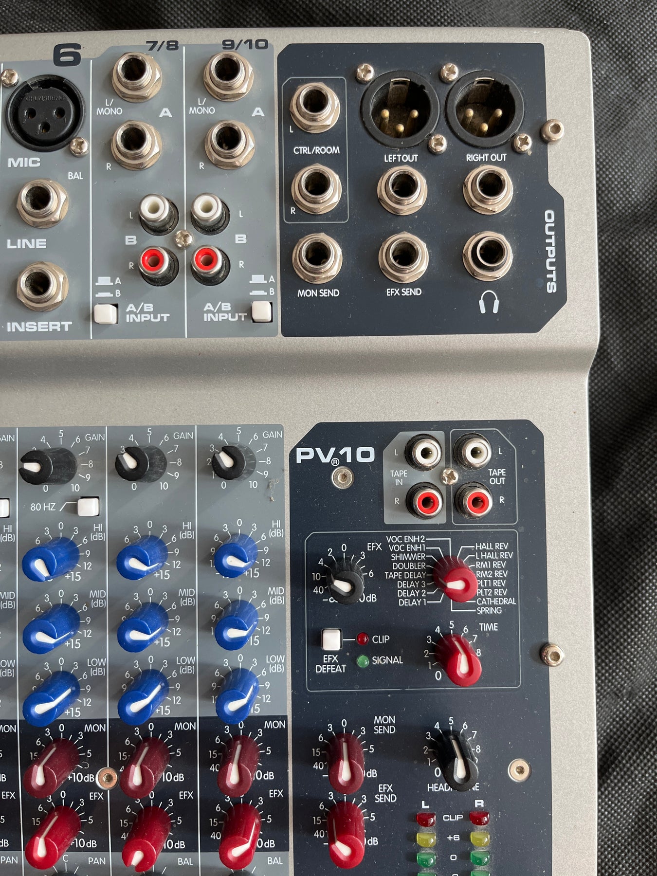 The PV10 - 10 Channel Mixer is a powerful sound option used or live, recording, and playback purposes. Featuring built-in DSP effects with multiple reverb and delays plus a vocal enhancer, the PV10 USB also offers a USB port for direct connection to a compatible computer. This mixer includes pre-fader monitor sends, post-fader effects send and phantom power for any condenser microphones. Experience superior sound quality with dual, switchable line inputs for stereo channels and tape to control room and mix assigns for external signals.