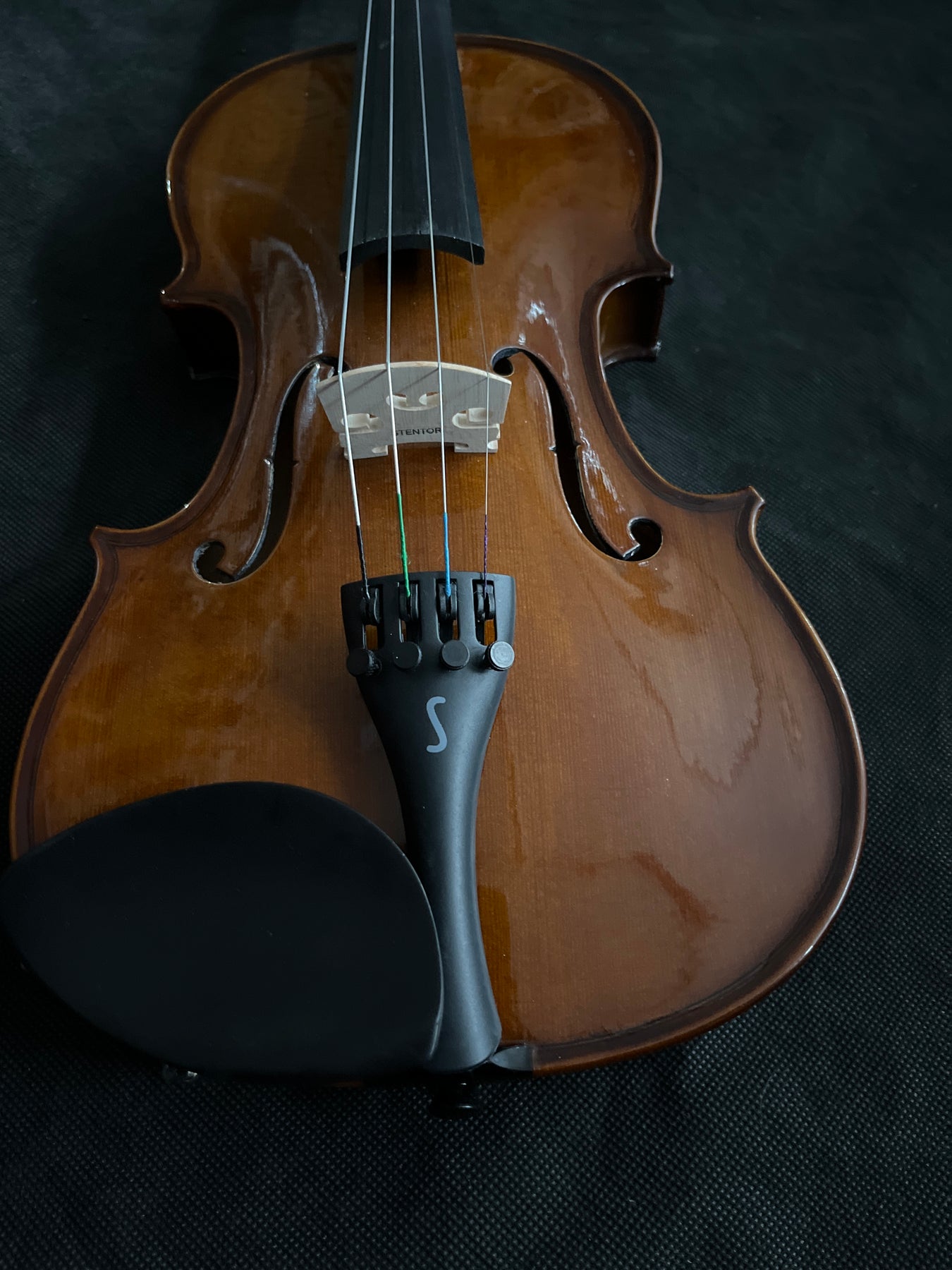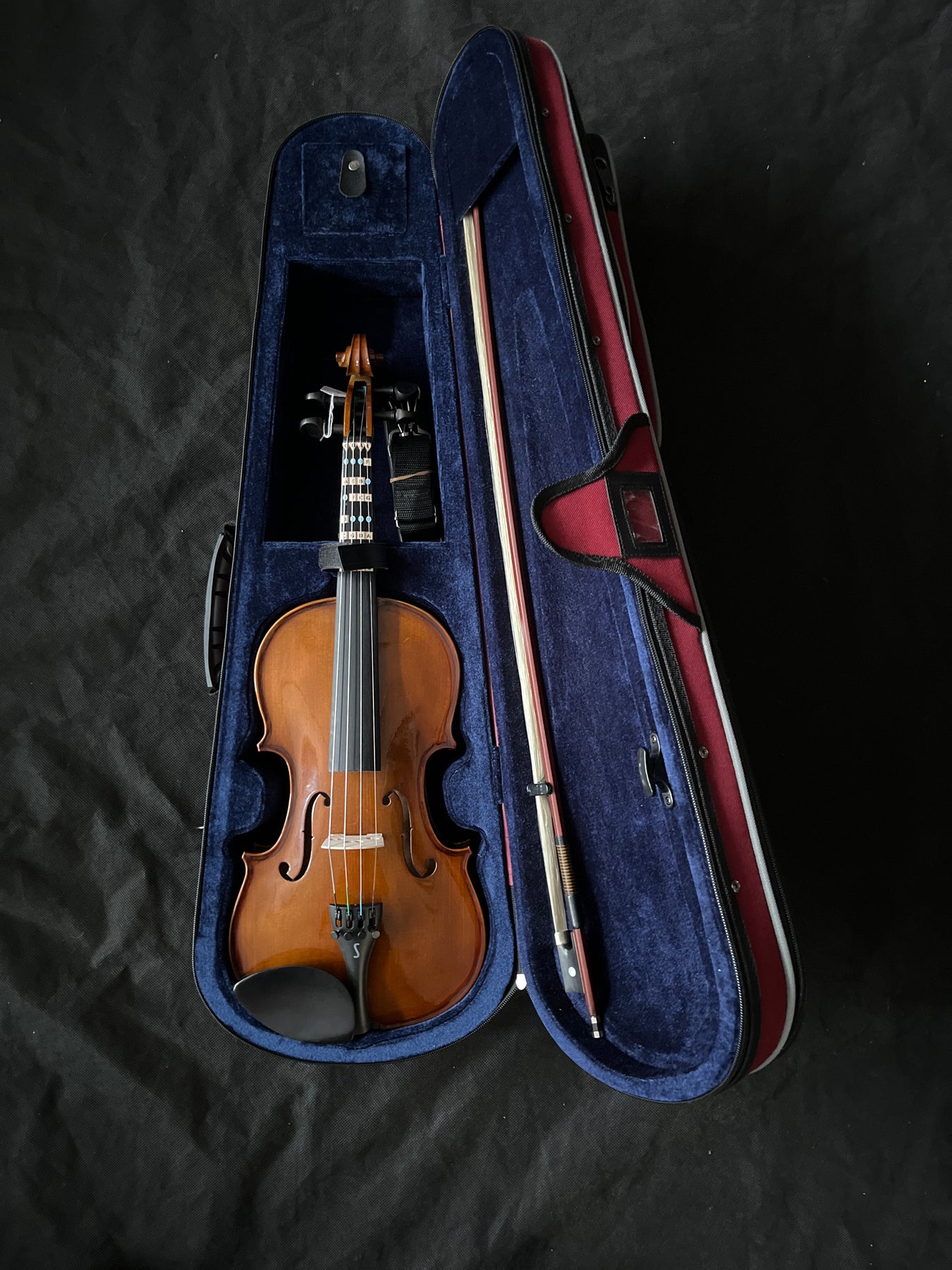 Hand crafted with fine-grained solid spruce top - solid maple back and sides - inlaid purfling - full ebony fittings - hardwood chin rest - super sensitive red label strings - alloy tailpiece with four string adjusters - nylon tailpiece loop. polished warm brown lacquer finish. outfits include octagonal wood horsehair bow with ebony frog - lightweight canvas covered case with instrument blanket and exterior shoulder rest pocket(violin/viola) or padded backpack bag (cello/bass)