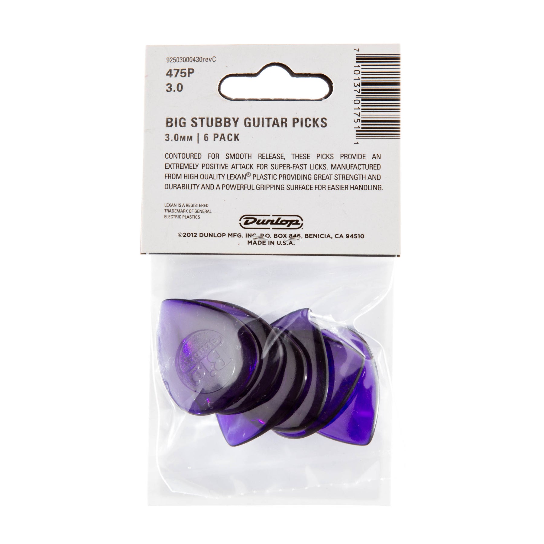 Contoured for smooth release, these picks provide an extremely positive attack for super-fast licks. Manufactured from Lexan®, providing great strength and durability. Powerful gripping surface for easier handling. Lexan® is a registered trademark of General Electric Plastics.